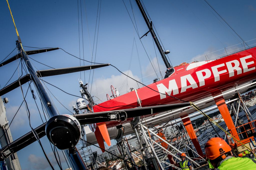 Recordemos que el pasado 30 de marzo por la tarde, cuando el MAPFRE se encontraba navegando en modo de pruebas en las proximidades de la isla de Ons (Pontevedra) con 25 nudos (46,3 km/h) de viento y olas de 4 metros de altura, rompía el mástil. Dos días después era trasladado de Sanxenxo a Lisboa y los equipos de tierra tanto del MAPFRE como del astillero de Volvo Ocean Race, iniciaron los trabajos para poder arbolar el nuevo mástil. Además, había que reparar los daños ocasionados en el casco, la quilla, las orzas y los timones a consecuencia del desarbolamiento.