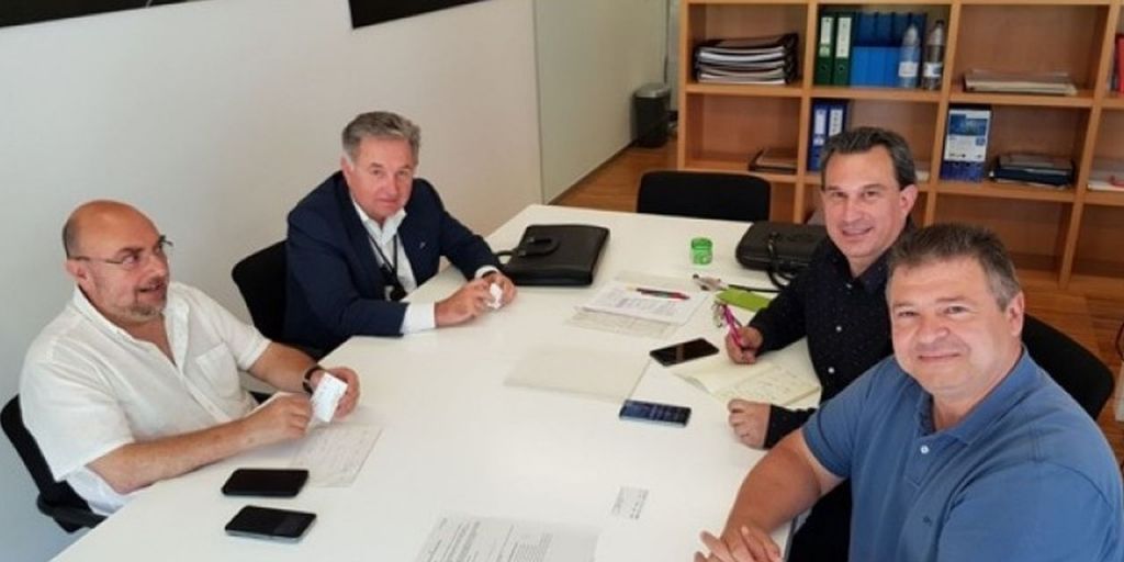 Víctor Pérez, Presidente de FOTUR, y Juanjo Carbonell, Secretario General de FOTUR, se han reunido esta mañana con los representantes de Ferrocarrils de la Generalitat Valenciana, Raúl Castelblanque Juanas, Director de Operaciones y Manuel S. Jardí, Director de Comunicación, para tratar de fomentar el transporte público en el ocio y el turismo de nuestra ciudad, así como en el área metropolitana. Nuevamente les hemos solicitado que se amplíen, de cara a la época estival. tanto los horarios nocturnos, como los trayectos del metro de Valencia.