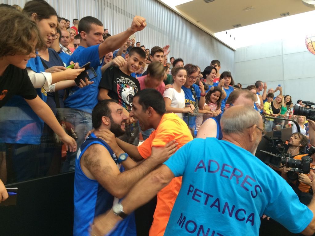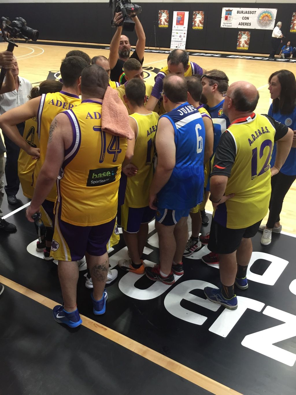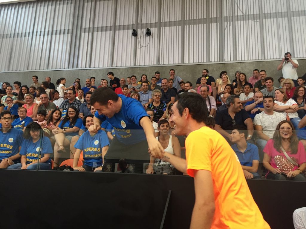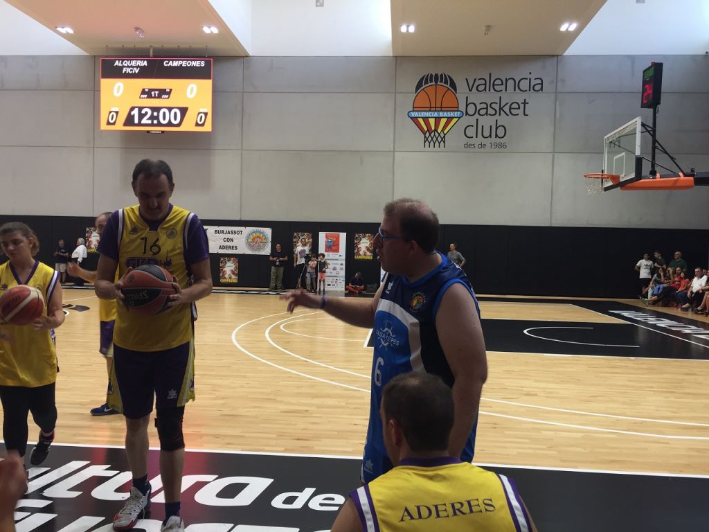 Los protagonistas de la película 'Campeones 'se trasladaron a València para jugar un partido contra la asociación que creo esta historia, ADERES Burjassot. Pero en esta ocasión no hubo un “contra” ya que el partido comenzó con todos los jugadores mezclados y divididos en dos equipos. Todos los jugadores disputaron un divertido partido amistoso que levantó de su asiento a la grada en más de una ocasión con sus asombrosos triples y pases. Los espectadores tampoco dejaron de animar con alegría durante todo el partido al grito de “Campeones” y “ADERES” acompañados de numerosos aplausos.
