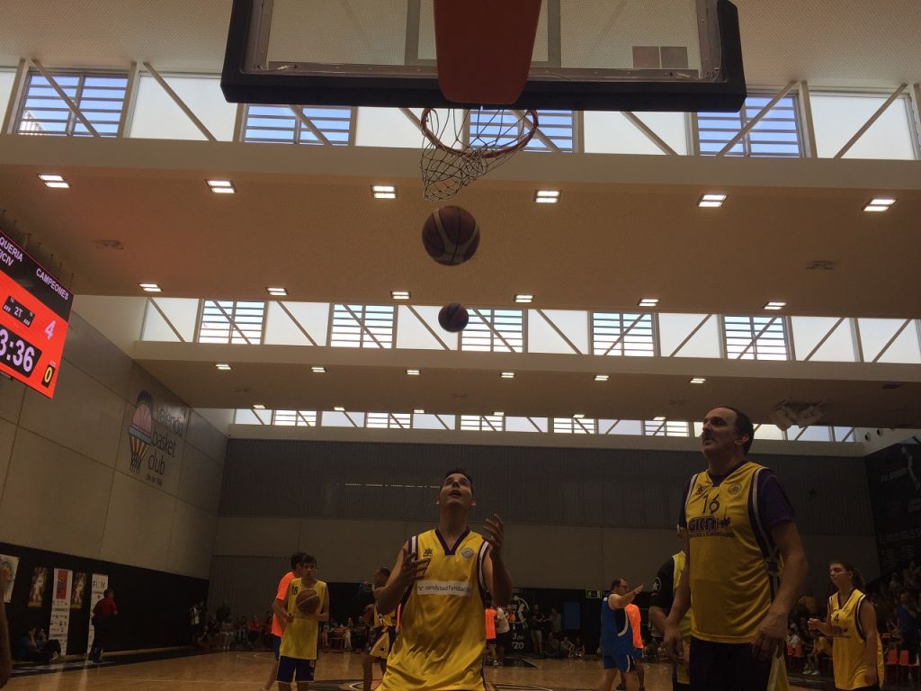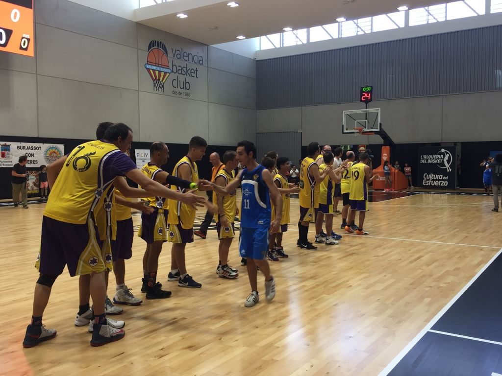 Los 'Campeones' de Javier Fesser y ADERES Burjassot (Asociación Deportiva, rehabilitadora y Social) disfrutaron e hicieron disfrutar de una animada tarde de mucha alegría, cariño, elogios, palabras de ánimo, positividad, ilusión y baloncesto organizada por el FICIV (Festival Internacional de Cine Infantil en Valencia) en L’Alquería del Valencia Basket.