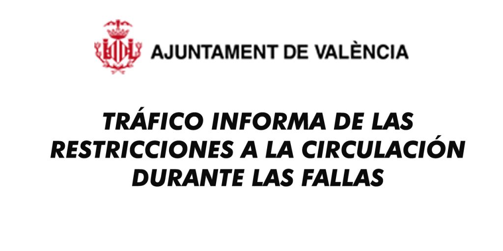 Con motivo de la fiesta grande de València, se restringe la circulación en toda la zona interior del perímetro formado por la marginal derecha del jardín del Túria –desde el puente de les Glòries Valencianes hasta la plaza Amèrica- y las Grandes Vías, incluyendo plaza de Espanya y los pasos inferiores de Petxina. Esta restricción será desde el 16 de marzo a las 15 horas hasta el día 20 a las 4 h de la madrugada. Además, desde el Centro de Gestión de Tráfico del Ayuntamiento de València se han recomendado una serie de estacionamientos fuera de los perímetros restringidos al tráfico.