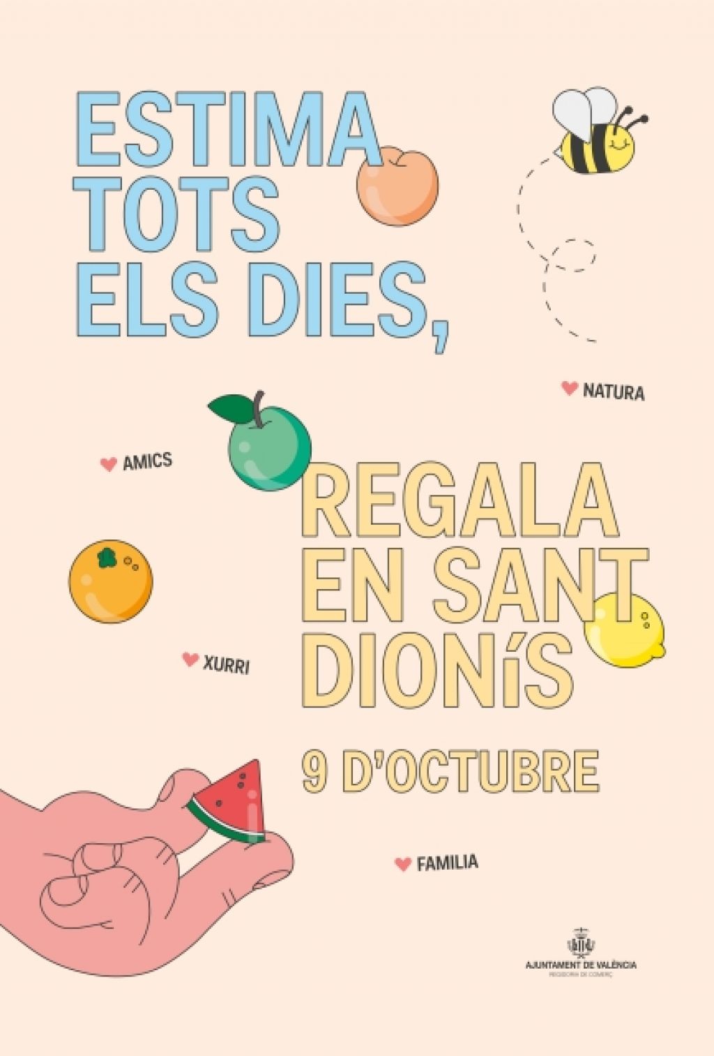 La Concejalía de Comercio ha lanzado la campaña 'Fiesta del amor', que "fomentará el comercio local a raíz de la tradicional celebración de San Dionís, conocida como la fiesta de los enamorados y enamoradas valencianas. Así, con carteles instalados en el mobiliario urbano instará a la ciudadanía con el mensaje “Quiere todos los días, regala en San Dionís", tal como ha anunciado hoy el concejal de Comercio, Carlos Galiana.