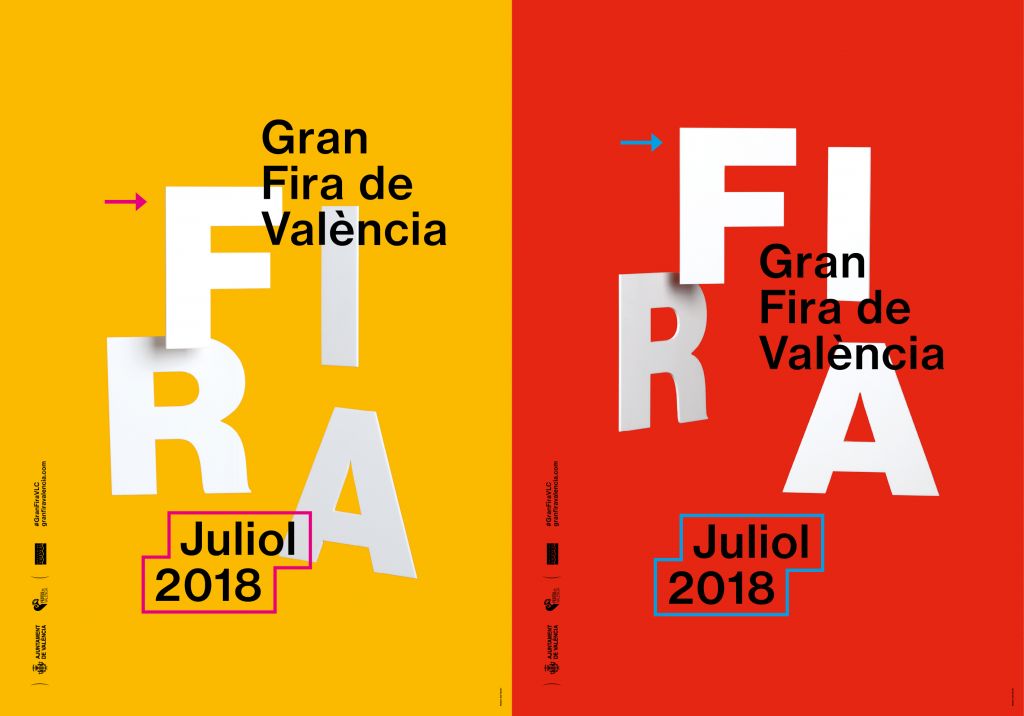 El trabajo de Ibán Ramón para la Gran Feria de Valencia de 2018 tiene como características principales el colorido y el uso de los elementos tipográficos como imagen. Cuatro variaciones del cartel principal sobre diferentes colores abren paso a todo un universo gráfico en que la comunicación de los diferentes contenidos de la Gran Feria son el principal argumento visual.