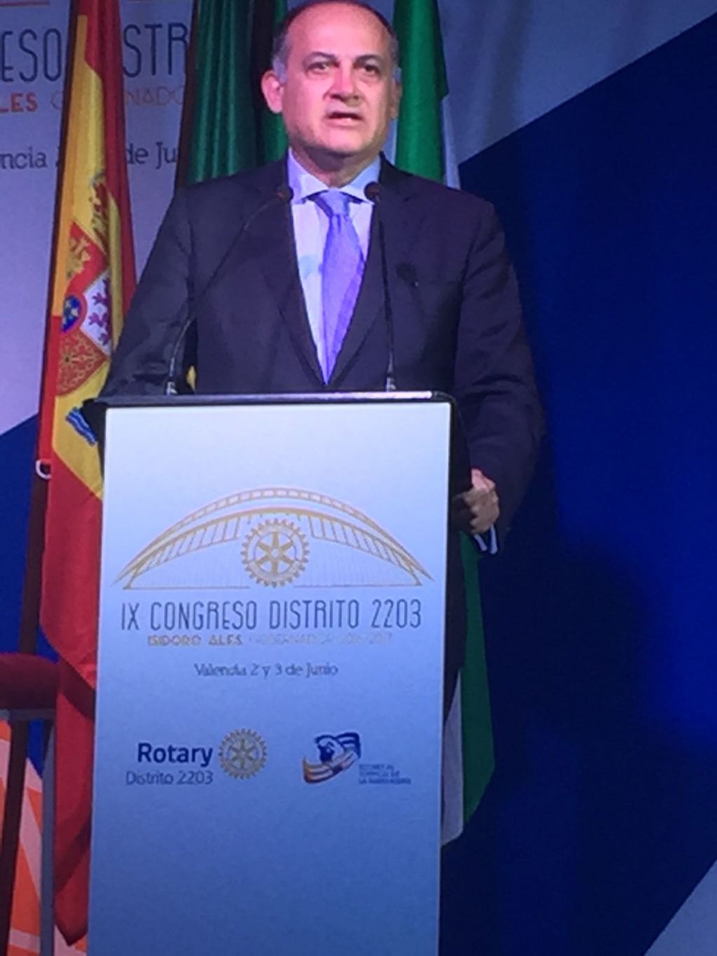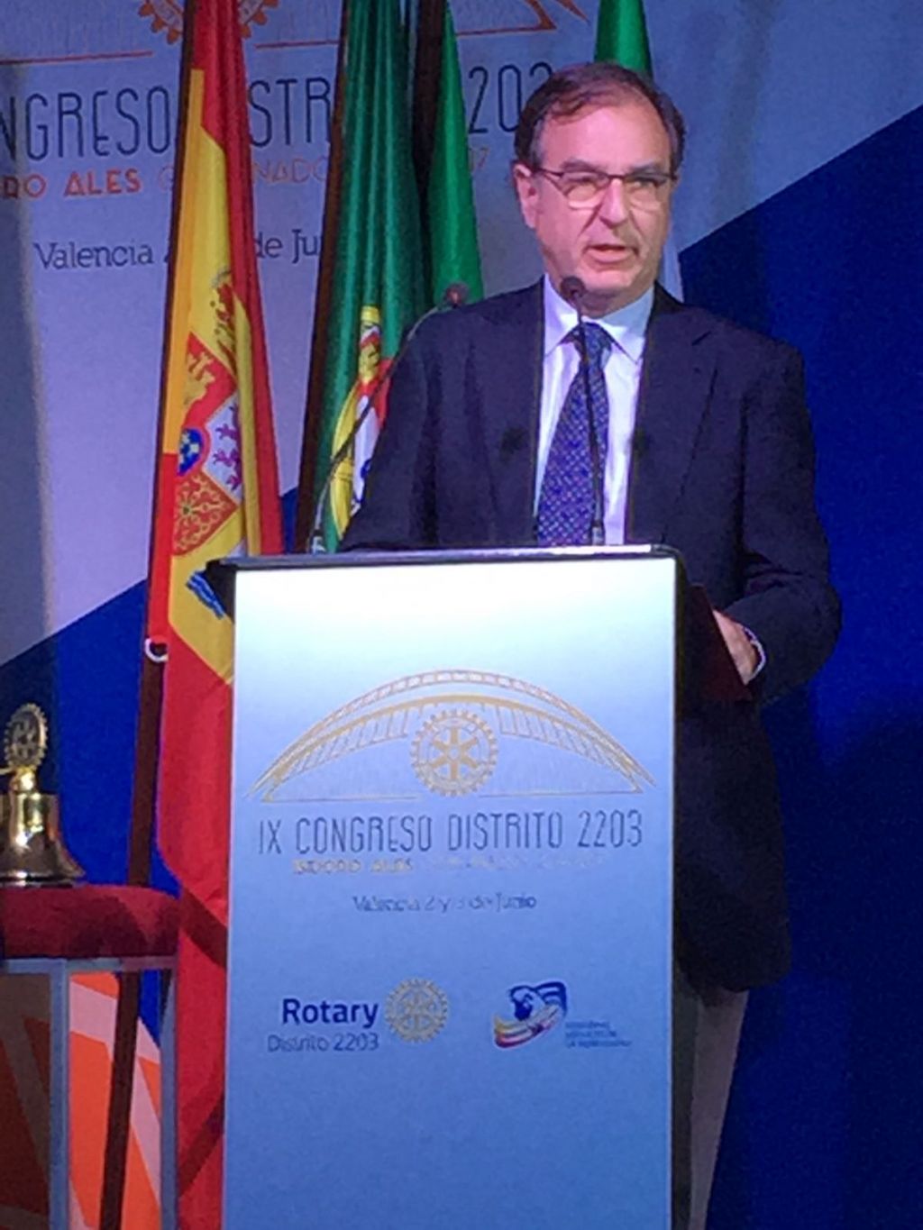 El pasado viernes 2 de junio a las 16h se celebró el acto institucional de inauguración del IX Congreso Rotario del Distrito 2203. Ante 300 rotarios asistentes provenientes de la Comunitat Valenciana, Andalucía, Balears y Murcia, el Gobernador del Distrito Isidoro Alés destacó que Valencia siempre es vibrante y moderna, como el movimiento rotario actual.