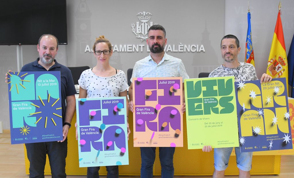 Durante el mes de julio vuelve la Gran Feria a València, con el objetivo de acercar la cultura a los barrios de la ciudad y ofrecer una oferta de ocio para todos los públicos. El concejal de Cultura Festiva en funciones, Pere Fuset, ha presentado hoy la nueva imagen de la Gran Feria, diseñada por Estudio Menta, una empresa fundada en 2008 y que ha trabajado anteriormente con la cartelería de algunas actividades organizadas por el Consistorio como la festividad del 9 de octubre de 2016 o en campañas de turismo y comercio. La cartelería se caracteriza por la combinación de diferentes colores y la tipografía inspirada en diseños de principio de siglo.