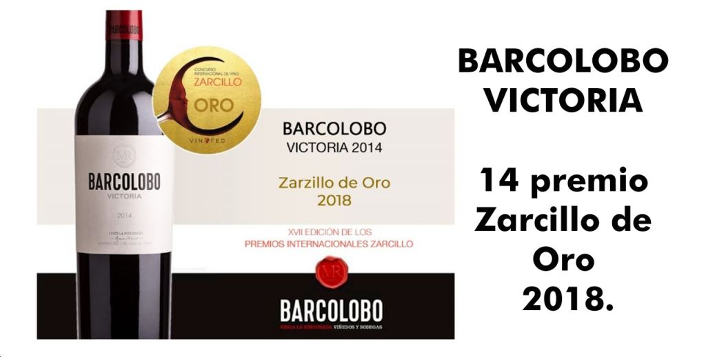 BARCOLOBO VICTORIA 2014 ha sido galardonado con el Zarcillo de Oro en la XVII edición nacional y IX Internacional de los Premios Zarcillo 2018.